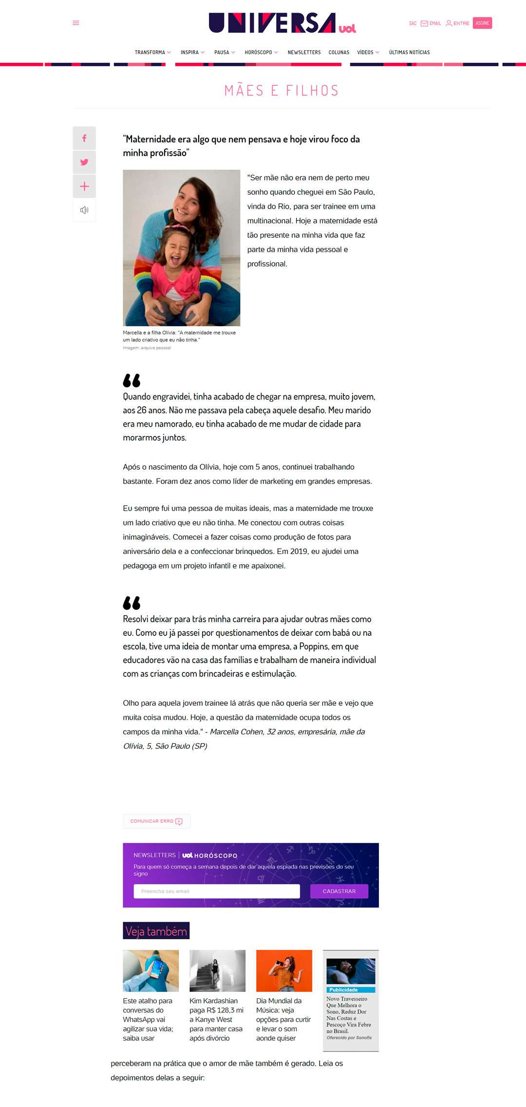 Link da matéria: https://www.uol.com.br/universa/noticias/redacao/2021/09/15/instinto-materno-nao-existe.htm